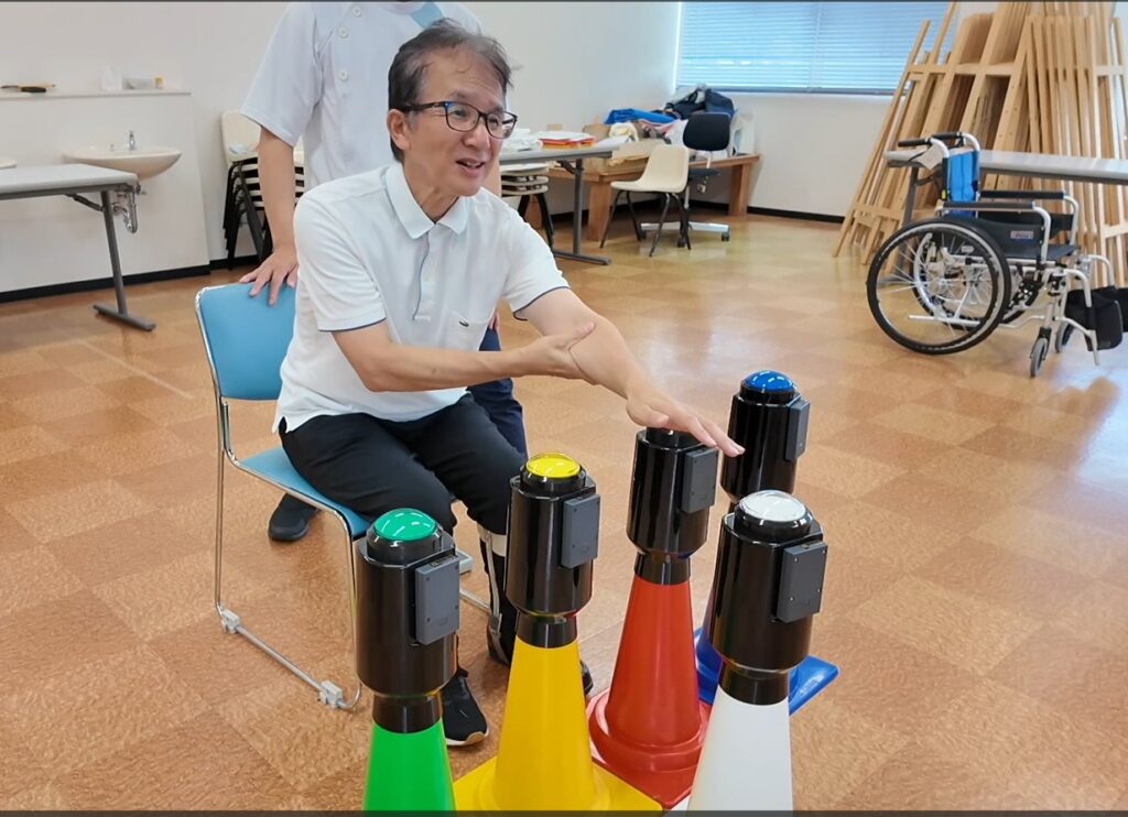 デュアルタスク・カラータッチ デュアルタスク・カラータッチでリハビリテーションへの応用もカウントレスです。 大学名 常葉大学 学部 保健医療学部 作業療法学科 https://www.tokoha-u.ac.jp/health-care/occupational/ 常葉大学 保健医療学部 作業療法学科 認定作業療法士 遠藤浩之様 【先生より】 デュアルタスク・カラータッチを使って施設訪問やイベントを行っていますが、 ただ反復横跳びする、ただ机上のボタンを押すテレビゲームでは私たちの活動は不十分。 せっかくからだを動かすなら、頭(認知機能)を使って、大きく素早くからだを動かさないと、生活に生かせません。 認知機能と運動機能の両方を強化できる、画期的なアミューズメントセラピーデバイス こども~高齢者まで楽しく遊びながらトライできる。 リハビリテーションへの応用もカウントレスです。 【リハビリ学習】 【イベント 市民交流フェスタ】 【イベント 学校説明会】